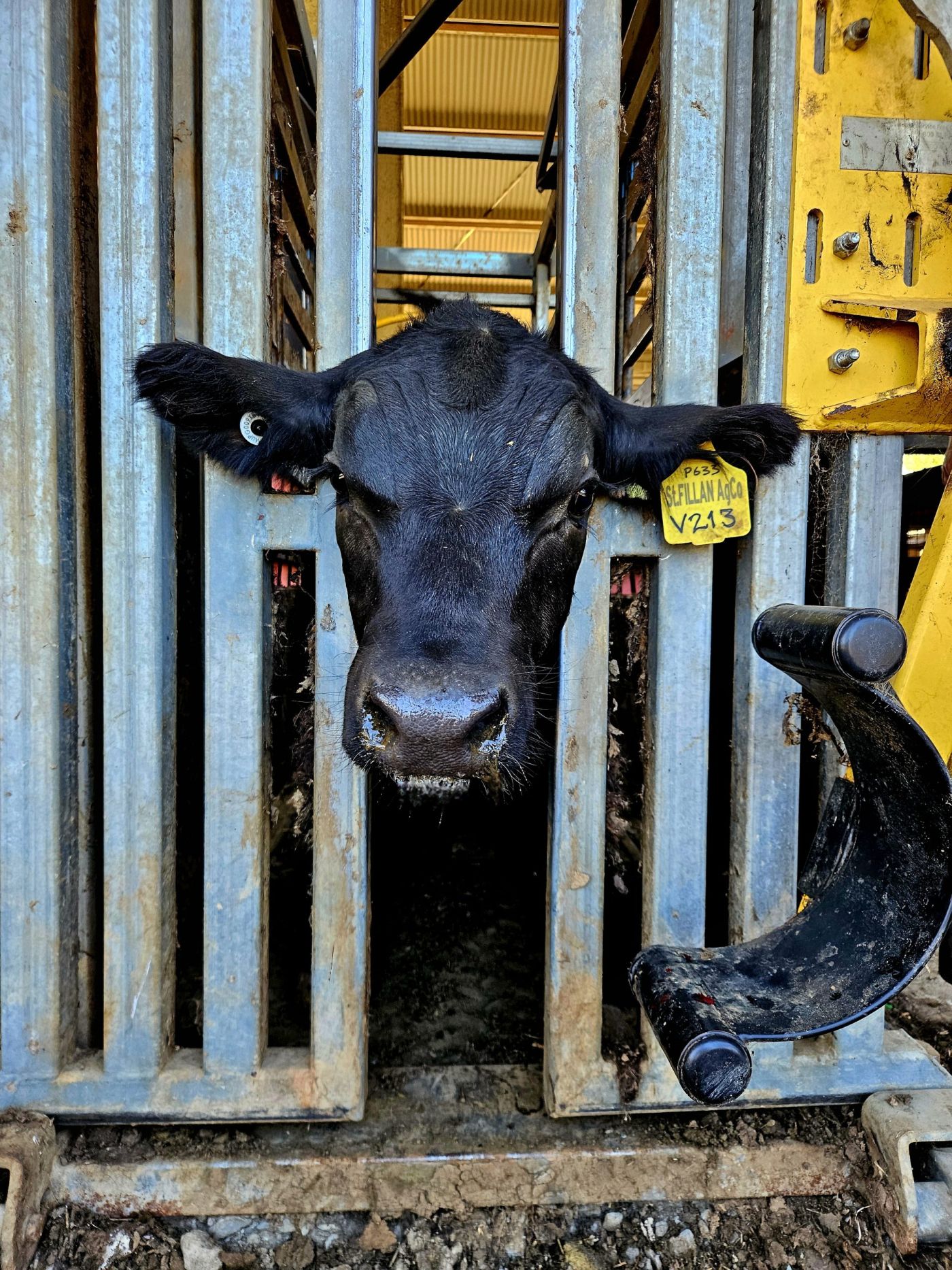 Working the yards this morning taking DNA tissue samples for PV and registration of our Spring’24 Stud Calves, our five month old St.FILLAN STATESMAN V213 (by the exceptional American Sire ‘Virginia Tech Statesman’ and Dam ‘Texas Pride’ P633 – ET) was a ripping Bull Calf..and he knew it!