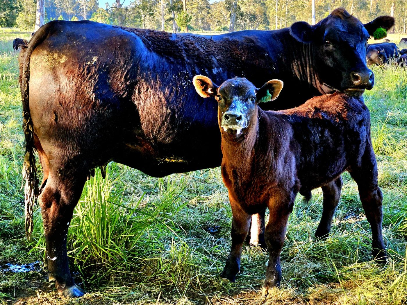 Our tremendous maternal lines, which some farmers still don’t fully appreciate as 50% of the genetic equation, are plain to see with this StF commercial cow representative of our broader herd. Milking and maternal instinct are perfectly captured by this photo taken yesterday afternoon under the shade of 140 year old Oak Trees…
