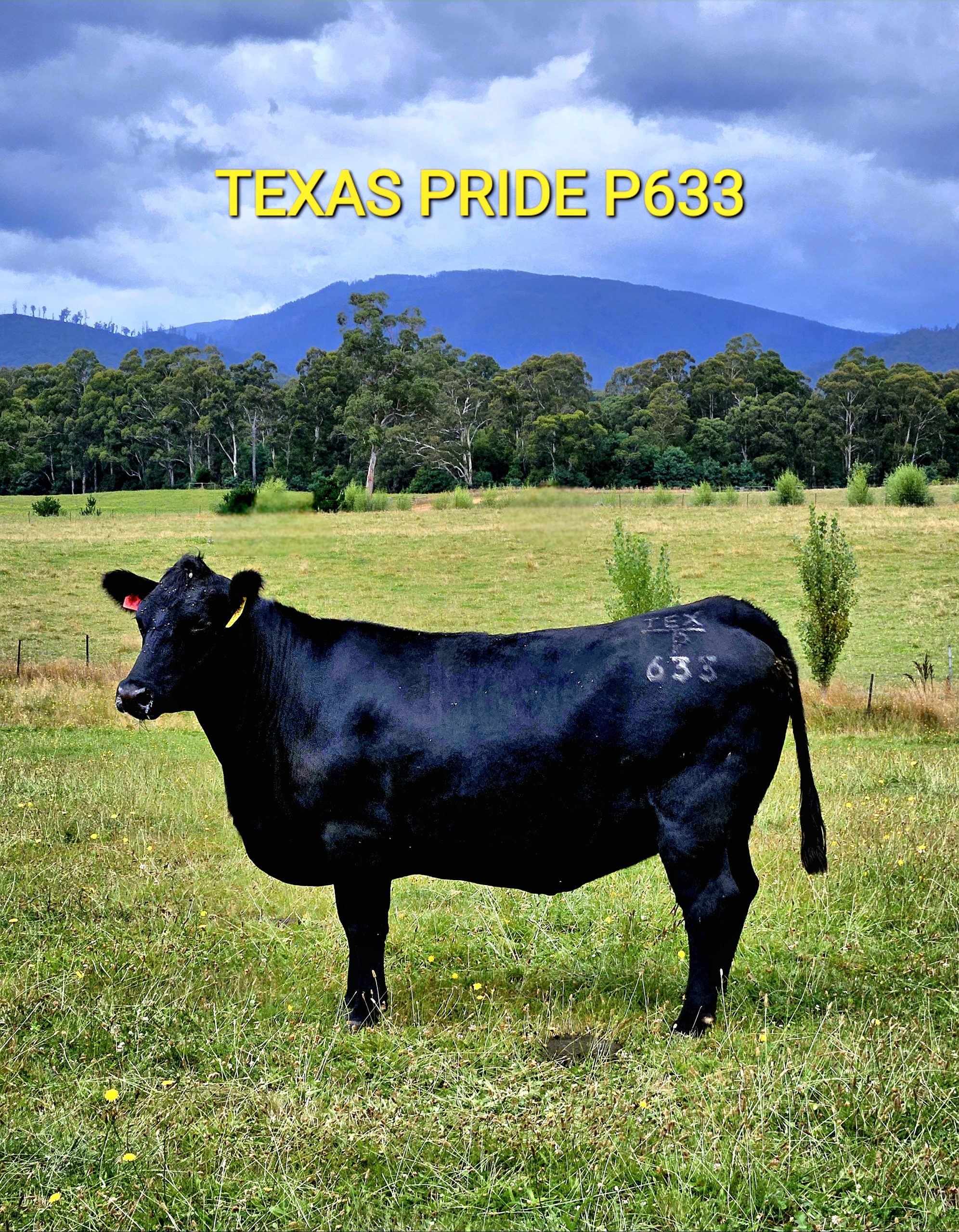 Our P633’s first sons sold in the Texas Angus 2022 Bull sale for $28,000, and her maternal Sister TEXAS PRIDE L600 has herself been sold for another Australian Angus Mature Cow record of $150,000 to the Mornington Peninsula.