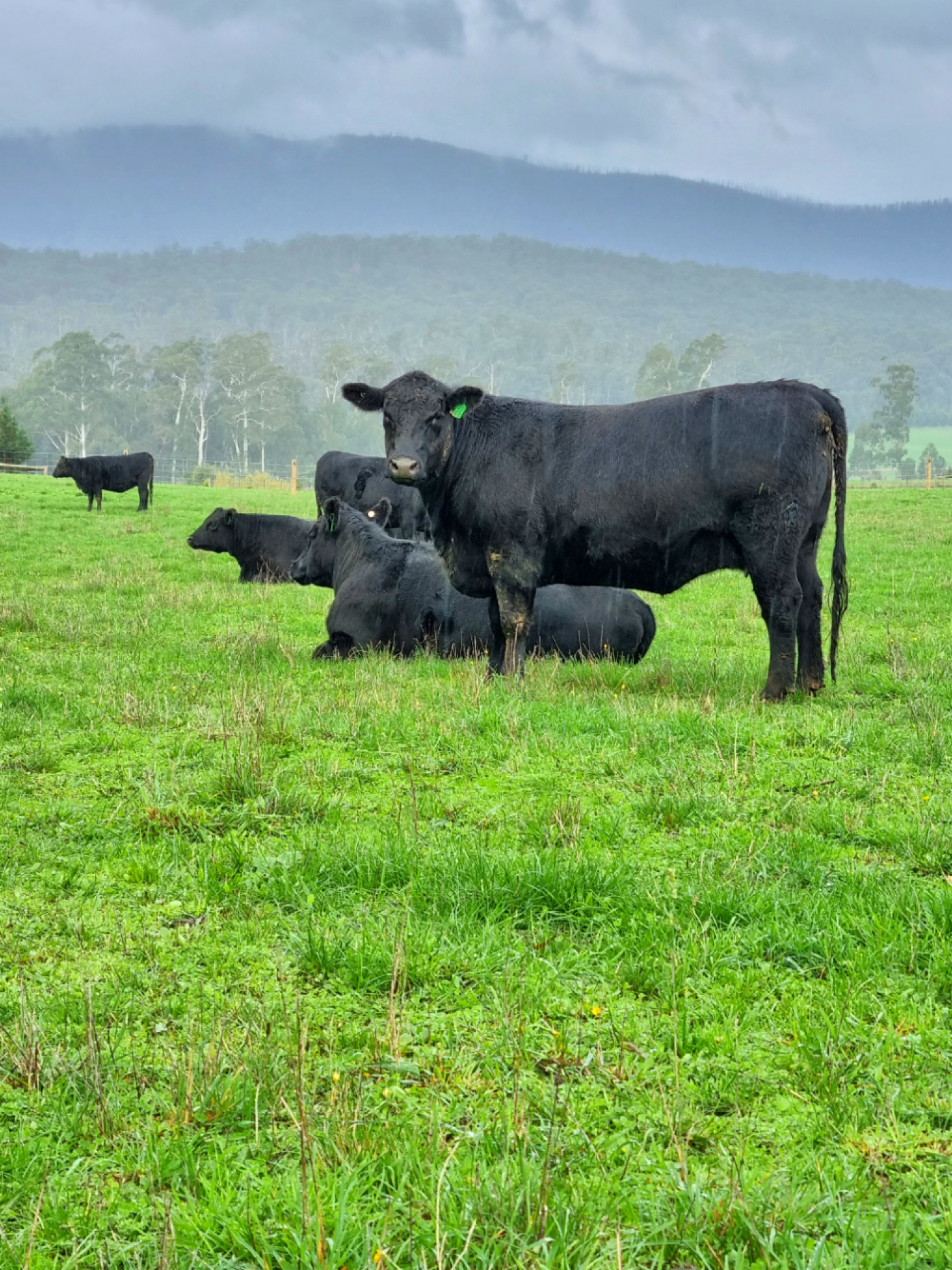 Its been a busy week at St.Fillan Farm with sales and trucking movements, and the cold weather finally arrived with several frosty mornings and Autumn rains. This beautiful 2nd calving Angus heifer is PTIC to one of our Team Te Mania Bulls and due to calve in mid Spring