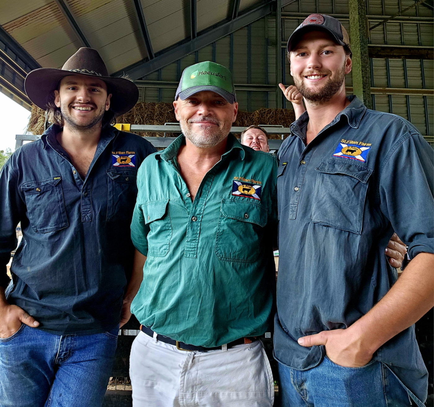Early start in our yards this morning as we begin Embryo Transfer into our Recip-Cows with Jayden, Brenden, Mike . . . and Dale Edwards (WorldWideSires) our brilliant technician and photobomber! Today we inserting Embryos with spectacular USA Sires to Texas Undine N555 and Texas Pride P633. The fully covered floodlit St.Fillan Farm Cattle yards make days like today easy and comfortable as it rains steadily adding another 15mm to the 26mm we received over the weekend.
