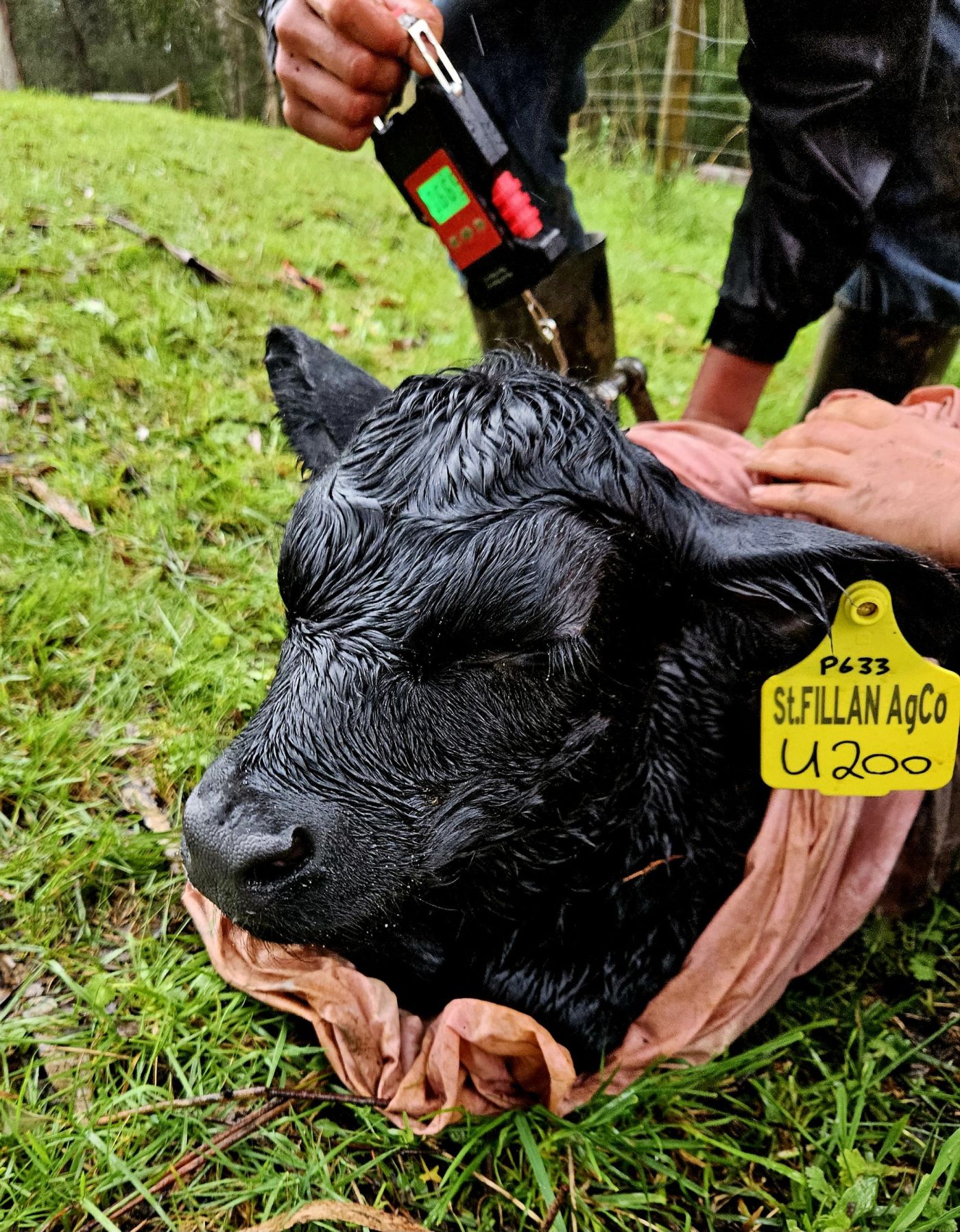 Welcome today to the very pretty St.Fillan Pride U200, a wonderful ET heifer out of our Texas Pride P633. She weighed in at 39kg in the driving rain here this morning, where our friends at the BOM were right about the weather prediction as its been very wet, solid, and relentless.