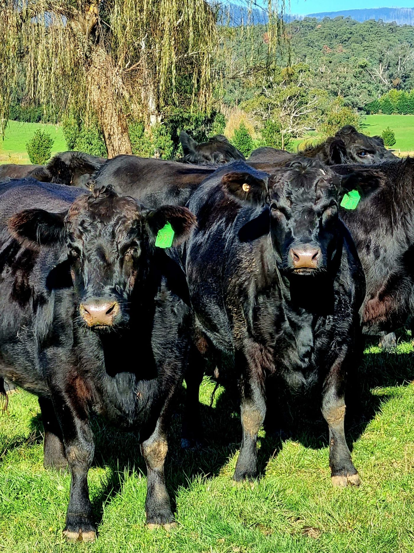 The sun is out and these pregnant 2nd Calving Heifers are “mudfat” heading into winter. A polar blast with snow is forecast for next week, so keeping their condition up is our paramount concern for happy healthy cattle at St.Fillan Farm.